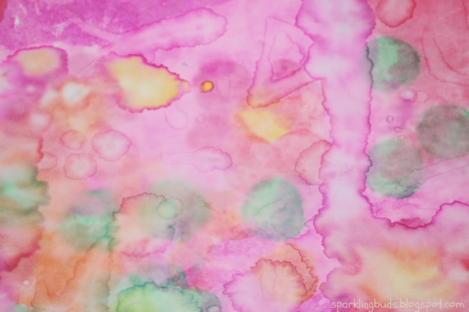2. Sprinkle water. The colors will mix and spread all over the paper.
